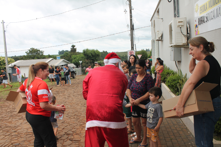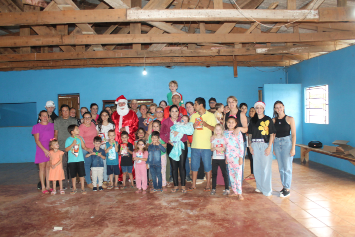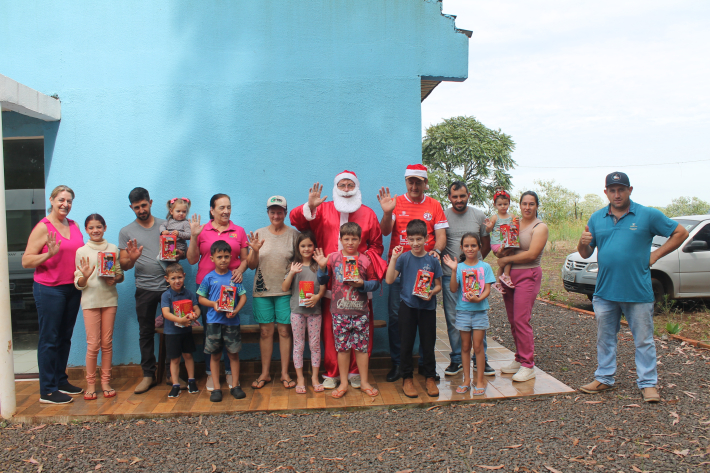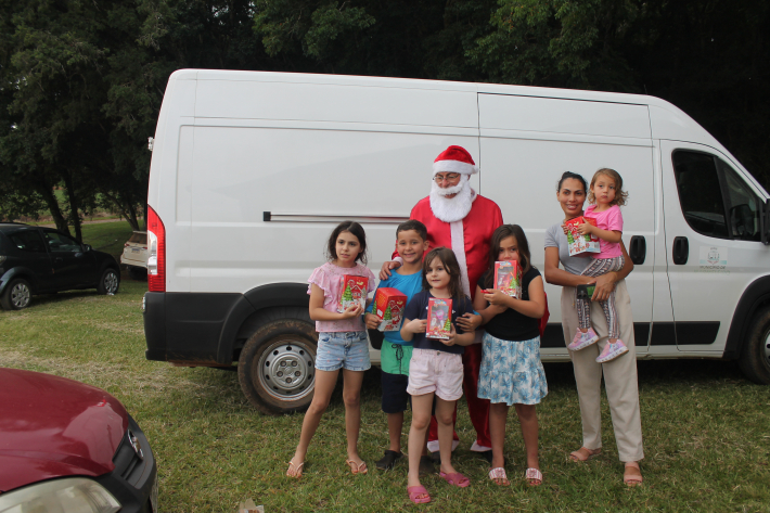 Todas as comunidades do interior e os bairros do município receberam a visita do Papai Noel Solidário, em uma ação que teve total apoio da Administração Municipal, especialmente no quesito logístico, garantindo que as doações chegassem a todos os locais de forma organizada e eficiente.
