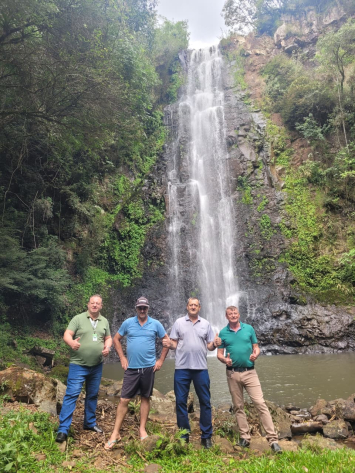 Durante a agenda, a comitiva visitou uma cachoeira localizada na propriedade do senhor Assis de Castro, um local de grande potencial natural que poderá ser estruturado e incluído no roteiro turístico oficial de Marmeleiro. A iniciativa reforça o compromisso da Administração Municipal em identificar e valorizar novos atrativos. O município vem avançando de forma significativa na organização do setor turístico, com o mapeamento e valorização de diversos pontos de interesse. Um dos principais destaques é o reconhecimento oficial, por parte do Governo do Estado do Paraná, do ponto de turismo religioso da Igreja Nossa Senhora Aparecida, localizada na Linha São Mateus, consolidando Marmeleiro no cenário estadual. Além disso, outros importantes atrativos seguem em processo de certificação, como a Igreja Nossa Senhora de Lourdes, na Linha Gruta, que também se destaca no turismo religioso, e a Torre Dunamys, um dos pontos mais impressionantes do município, proporcionando aos visitantes um nascer e pôr do sol deslumbrante, com vista privilegiada para até nove cidades da região. As ações demonstram o planejamento e o empenho da gestão municipal em estruturar o turismo como vetor de desenvolvimento econômico, promovendo a valorização das belezas naturais, da fé e da cultura local. Para o prefeito Jander Luiz Loss, o momento é de consolidar e expandir os avanços. “Estamos trabalhando para organizar, estruturar e dar visibilidade aos nossos pontos turísticos. Marmeleiro tem um potencial enorme, e nosso objetivo é transformar isso em oportunidades para nossa população”, destacou.