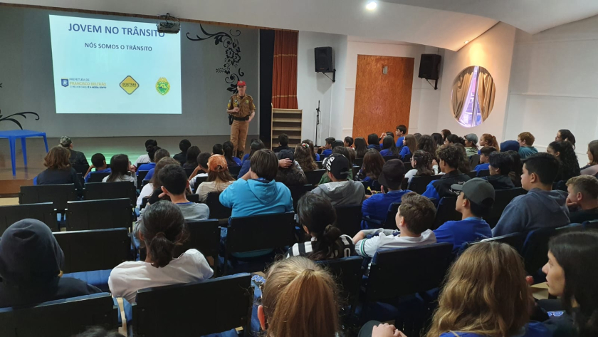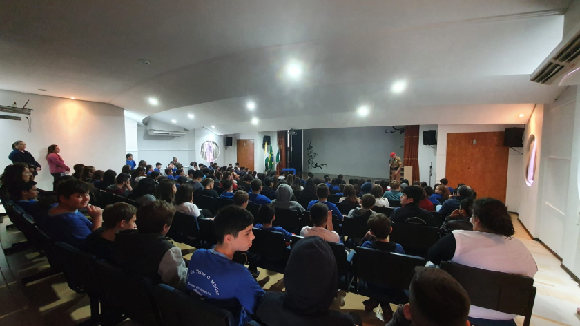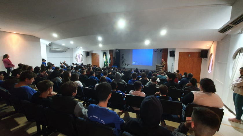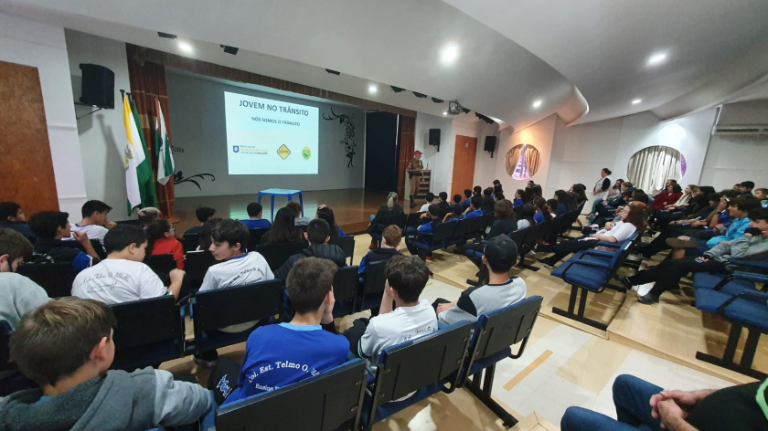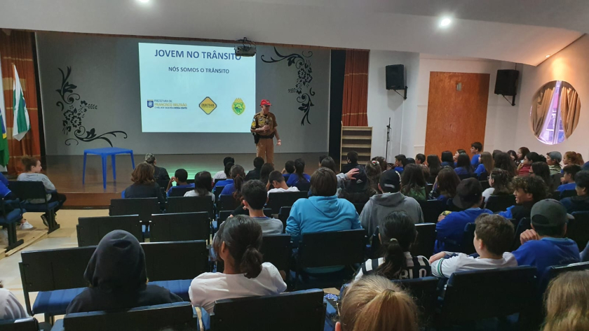 Nesta quinta-feira, 26 de maio, a Administração Municipal de Marmeleiro por meio do Departamento de Trânsito Demartran e Departamento de Educação, realizou mais uma palestra no Centro de Capacitação dos Professores desta vez com os alunos do Colégio Telmo Octávio Muller.