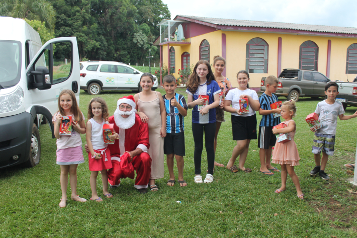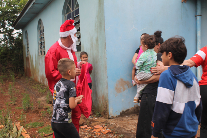 Todas as comunidades do interior e os bairros do município receberam a visita do Papai Noel Solidário, em uma ação que teve total apoio da Administração Municipal, especialmente no quesito logístico, garantindo que as doações chegassem a todos os locais de forma organizada e eficiente.