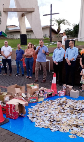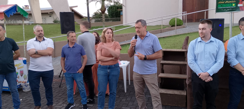 Na última segunda-feira, 12/01, o prefeito Jander Loss e a vice-prefeita Suzana Felipe participaram do sorteio da campanha Natal Iluminado ACIMAR 2025, juntamente com o presidente da entidade, Sérgio Krassmann, a presidente da Câmara de Vereadores, Rosângela Prestes e demais vereadores, na Praça Central.