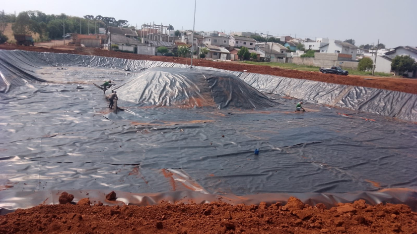 Durante a visita, estavam sendo finalizadas a instalação das mantas de geomembrana, responsáveis pela contenção de água no lago e por vedar as infiltrações existentes no local. De acordo com os responsáveis ela obra, a previsão é que em até 40 dias o lago esteja cheio, sem que haja possibilidade de vazamento.
